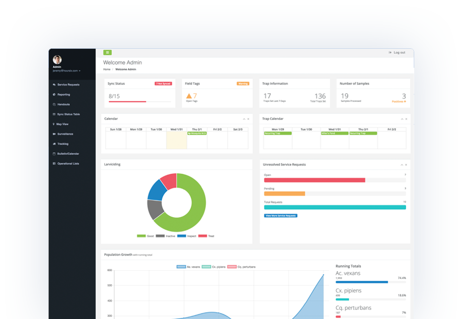 Get a quick glance at the health of your district with dashboard metrics that highlight key data points. Population tracking, site treatment status, and trap information are at your fingertips.